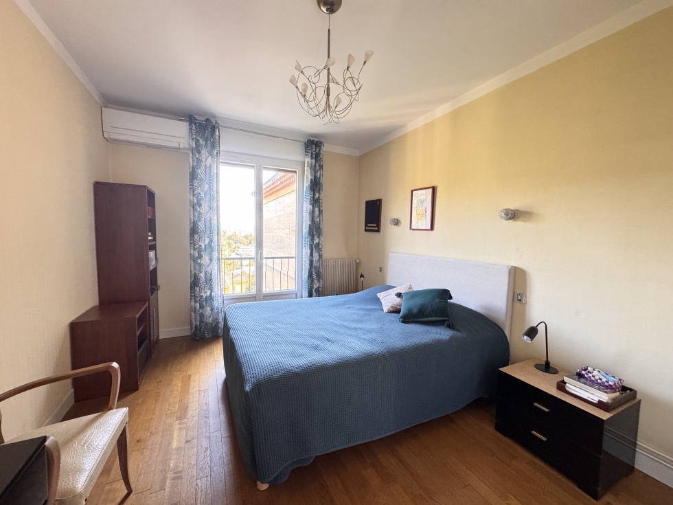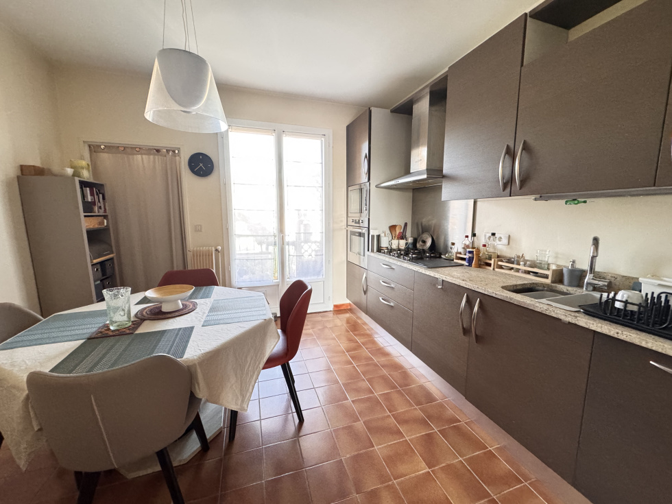 Aix-en-Provence, dans une résidence de standing de 91 lots d'habitation au calme absolu, appartement traversant de type 4 de 94 m² situé au dernier étage avec ascenseur. Composé d'une entrée desservant un séjour ouvrant sur une terrasse plein sud bénéficiant d'une magnifique vue panoramique, une cuisine indépendante aménagée avec loggia attenante, le coin nuit offre du coté nord deux chambres, une salle d'eau et du coté sud une suite parentale avec salle d'eau et dressing, WC indépendant, nombreux rangements. Appartement entièrement rénové avec climatisation réversible. Cave privative au pied de l'immeuble ainsi qu'un grand garage. Charges 2800 € / an tout compris.