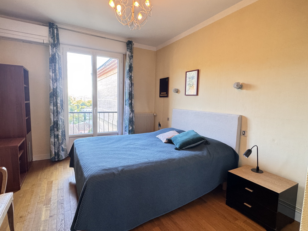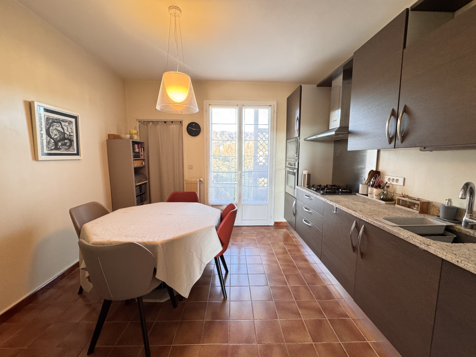 Dans une résidence de standing de 91 logements, au calme absolu, découvrez ce superbe appartement traversant de type 4 d’une surface de 94 m², situé au dernier étage avec ascenseur. Il se compose d’une entrée menant à un vaste séjour ouvrant sur une terrasse exposée plein sud, offrant une magnifique vue dégagée. La cuisine, indépendante et entièrement aménagée dispose d’une loggia attenante. L’espace nuit comprend, côté nord, deux chambres et une salle d’eau, ainsi qu’une suite parentale côté sud avec salle d’eau privative et dressing. WC indépendant et de nombreux rangements complètent l’ensemble. L’appartement, entièrement rénové, bénéficie d’une climatisation réversible. Une cave privative au pied de l’immeuble et un grand garage viennent parfaire ce bien. Charges : 2 800 € / an, tout compris.