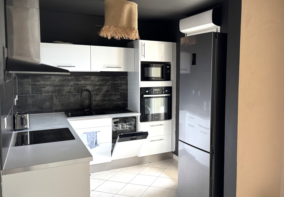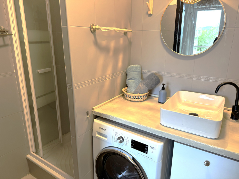 VUE PANORAMIQUE SUR LA SAINTE VICTOIRE. Aix en Provence, "La Duranne Haute". Dans une copropriété de 2009 sécurisée de 160 lots, bel appartement 4 pièces de 76 m² au deuxième étage avec ascenseur, comprenant un grand séjour donnant sur une terrasse de 16m² , une cuisine entièrement équipée, 3 chambres, une salle d'eau, une salle de bains et un WC indépendant. Grand garage en sous-sol et place de parking exterieure privative. A voir Absolument ! Charges Annuelles: 1610 €/an.