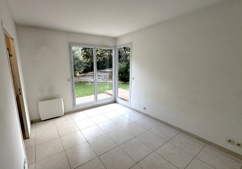 Aix en Provence, la Duranne basse, proche de toutes les commodités et des axes routiers, spacieux appartement de 106 m² en rez-de-jardin composé d'une entrée, un grand séjour lumineux donnant sur la terrasse, une cuisine ouverte entièrement équipée, 3chambres, une salle de bains, une salle d'eau, une buanderie et 2 WC. Entrée individuelle, place parking, double box fermé, jardin arboré de 400m². charges/an : 1873 €