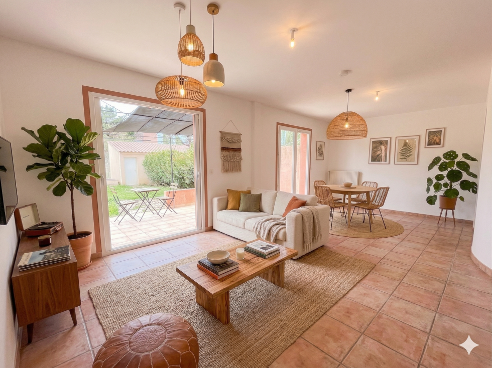 Aix en Provence, secteur Celony, une maison de Type 4 de 82m² sur un terrain piscinable de 1.550m². Comprenant au rez de chaussée : Une entrée avec un placard, un grand séjour donnant sur une terrasse et jardin, une cuisine indépendante aménagée, un WC. A l'étage : trois chambres avec rangements, une salle de bain + douche et un WC indépendant. Maison très lumineuse exposée Sud Ouest, vue dégagée.