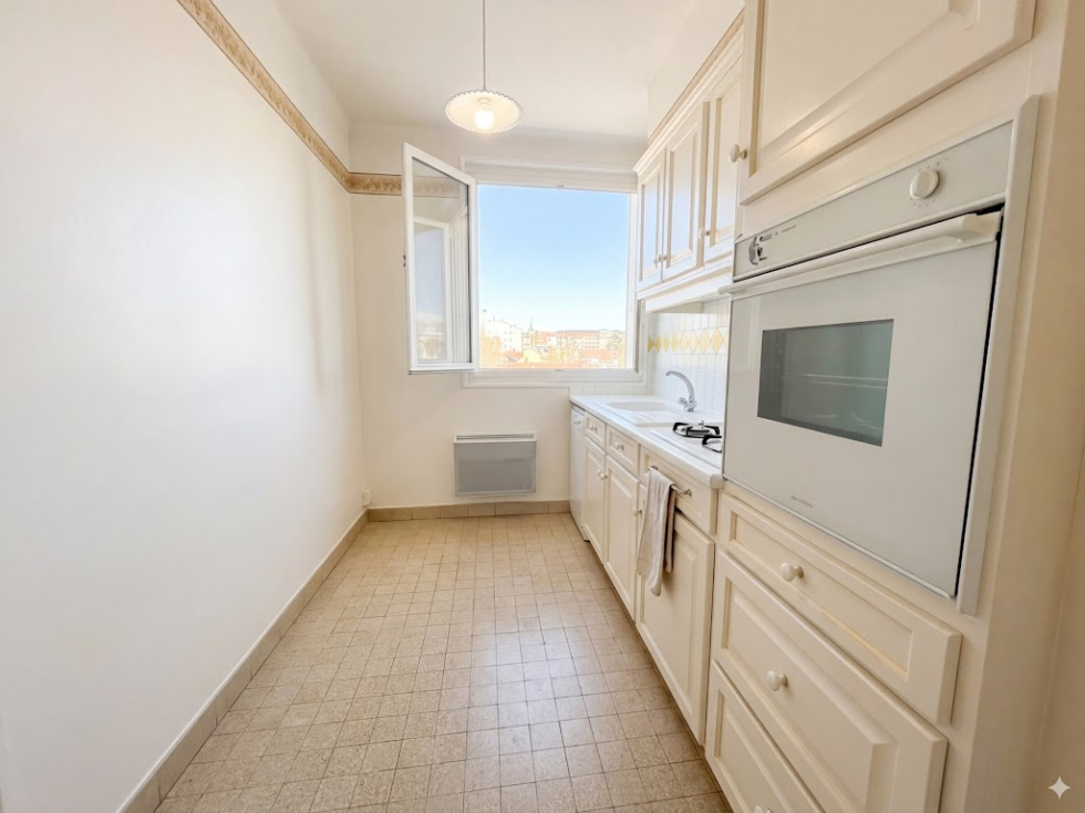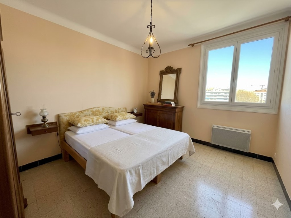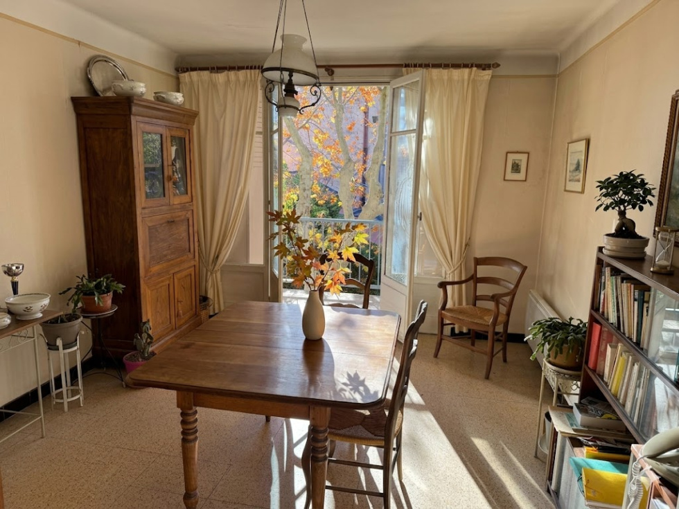 Aix en provence, centre-ville, au calme et à 2 pas de la gare routière et de la Rotonde, dans une petite résidence de 44 lots, appartement 3 pièces traversant de 58 m² situé au 2ème étage composé d'une entrée, un séjour donnant sur balcon, une cuisine séparée avec très belle vue Sainte Victoire, 2 chambres, une salle de bains et un WC indépendant. Cave et garage fermé. Charges/an : 980 €